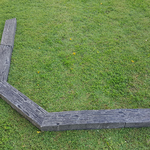 The Garden Edging block has the timber texture of our sleepers in a charcoal colour. The block is 700mm (longest edge) x 125mm wide x 75mm thick. The ends are cut on a 22.5 degree angle. This allows the blocks to be set in a straight row as well as being able to create curves. The angle allows the blocks to turn a 90 degree corner with just one block on the diagonal.